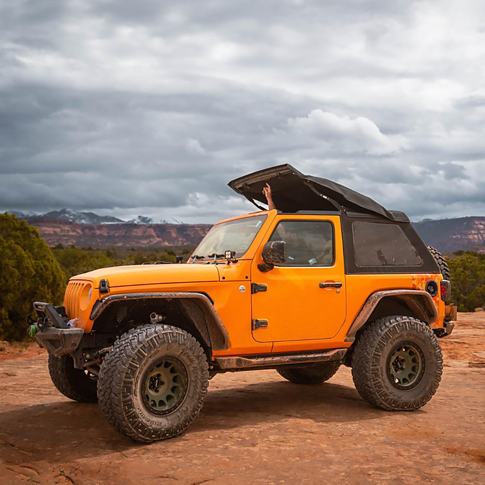 Il Trektop® Glide™ vanta una retrattilità completa, grazie all'esclusiva tecnologia SkyGlide di Bestop. Grazie alla praticità del nostro design brevettato, una persona da sola può sollevare o abbassare il tetto senza sforzo, rendendolo ideale sia per le gite in famiglia che per le avventure in solitaria.