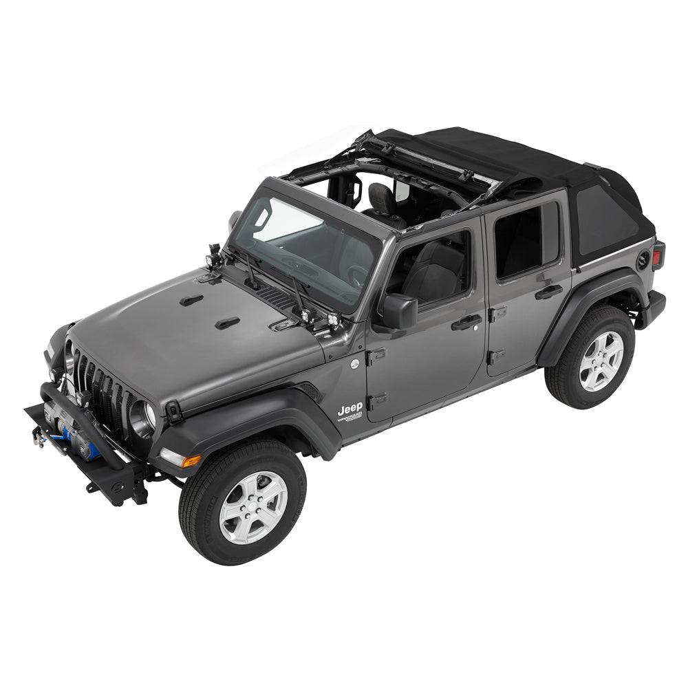 - Rimuovendo i finestrini laterali e posteriori, la Trektop NX funziona come una capote Safari Bikini®.